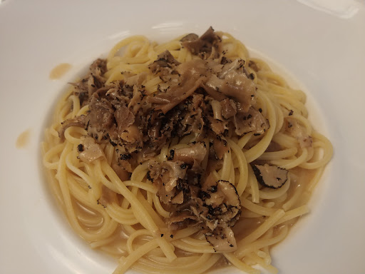 Ensuite, j'ai opté pour un plat de tagliatelles aux truffes. Les pâtes étaient cuites à la perfection, al dente, et la sauce crémeuse aux truffes était riche et délicieuse. Chaque bouchée était un pur plaisir, avec des saveurs parfaitement équilibrées.