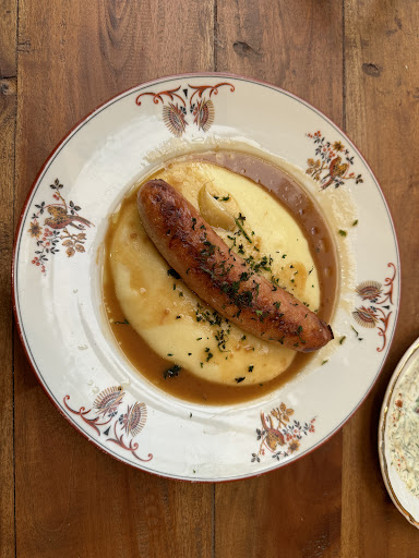 The main course featured a beautifully grilled sausage laid atop a velvety bed of mashed potatoes aligoo, drizzled with a savory gravy that tied the dish together wonderfully. The sausage was cooked to perfection, boasting a crisp exterior and a juicy, flavorful interior, while the mashed potatoes were smooth, buttery, and comforting.