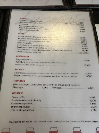 Read moreWe were recommended this bistro by our hotel and really loved the food. I ordered the emince de poulet, creme de champignons, & puree de potates douces (chicken, creamed mushroom, and sweet potato mash). My sister ordered the confit de canard, pommes soutess (duck with thinly sliced sauteed potatoes). Both dishes were amazing. I really enjoyed the sauce on the chicken and every bite was delightful. Everything was really well seasoned & cooked well. While the menus were only in french (we were able to use an app to translate) the staff spoke english and was very nice. I also ordered a cappuccino at the end of my meal, was delicious. Would...