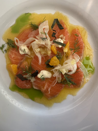 We began with a traditional French onion soup… elevated with a subtle Japanese twist that gave it a lighter, more refined depth. The salmon carpaccio that followed was beautifully plated, with dill and tangerine adding a bright, fresh contrast to the silky fish. For our mains, the seasoned duck leg with ratatouille was rich and tender, balanced by the rustic charm of the vegetables, while the bouillabaisse with miso offered a comforting, umami-packed warmth that lingered just right.