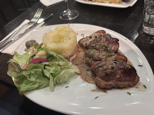 If you’re ever in Paris …. If there was more stars, I would gladly give them all! We discovered this little gem by pure chance and I’m so thankful for it. It’s honestly one of the best heartwarming welcome I had in a very long time. From the moment we stepped in Bistrot Clara to when we left the service was amazing! The atmosphere was cosy with this feel at home vibe. The music was soothing and just the right amount to relax. Now for the food … we opted for the « Piece du Boucher » cooked to perfection, the pepper sauce with a nice kick, homemade fries, homemade pickled red onions in the salad, homemade mayo balancing each mouthful and making you want another one… all this with a nice fresh and crisp glass of Sauvignon (great recommendation from the owner). The portions were just the right amount … I’m a fan of dessert and coffee so of course I had to try the café gourmand : delicious trio of raspberry panna cota, chocolate mousse and the crème brûlée …. Succulent!! I left Bistrot Clara with one thought … I want more so see you next time. I highly recommend this place, you will not be disappointed from start to finish! PS: promise I’m not related in any way to the owner. This is just an honest opinion from a foodie and good customer...