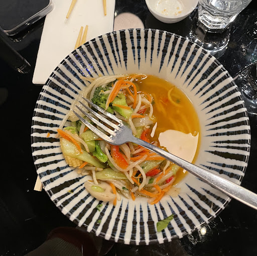 Went there on a Friday night for drinks initially, and then decided to stay for diner as well. The identity of the restaurant is quite unique - a modern fancy Asian bistrot - we were very curious to try it out. Overall, a good experience. The place is spacious, lots of space inside and a generous terrace as well. The cocktails were a disappointment - they tried to put an Asian spin on classics like mojito or negroni, but sadly for us it didn't work. Could have been a great idea but not very well executed. The food on the contrary is delicious. Asian dish with a modern look and feel ; we tried a veggie wok and roasted pork tenderloin with Japanese pasta - it was very good. We also shared the chicken gyoza as starter and they were very good. Service was ok. Will go back to try other dishes and confirm my rating ; really felt disappointed because the place has potential and the food...
