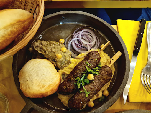 Read moreLa carte paraissait alléchante et nous aimons en général bien le concept de petites assiettes à partager, même si l'addition monte vite. Mais ici nous avons été déçu par la cuisine. Sur les 4 assiettes commandées, seuls les gyozas à la libanaise étaient bons. Les autre étaient une déception : Vitello tonnato avec une viande un peu caoutchouteuse, pleine de nerfs (et coupée un peu épaisse à mon goût mais c'est personnel). Peut être le fait d'en avoir mangé un excellent peu de temps avant joue... bun au homard, bien présenté mais avec peu de goût de homard tartare de dorade, poisson trop farineux et globalement manque de goût (du poisson et du citron avec quelques feuilles de salade, cela fonctionne uniquement si le poisson est excellent) J'ai l'impression d'une inadéquation entre l'ambition de la cuisine et la qualité des matières premières, mais peut être sommes nous tombés sur un mauvais soir - ou sur les moins bonnes options de la carte !