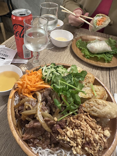 Omg this place is such a gem in Paris! Amazing food, prices and fast. If you are dining in the place or take out, you have to make the order in some screens. The information is very detailed about each dish and you can choose to dine in or take out. The food is abundant and worthy for the price. Incredibly delicious. I had Beef Bo Bun and you have a good amount of meat as well as the other ingredients. Delicious nems too. The restaurant has some space to eat there and I was surprised that no one was there at dinner time. But since the resto is nearby the canal, it could be a good option to take out and just eat on the shores of the canal. The prices are amazing considering the amount of food and quality. Probably the best street food resto you’ll find in Paris. Definitely will come...