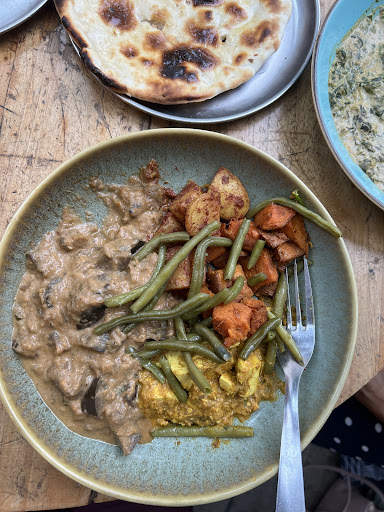 Came here on a Friday and it was pretty busy...there was a big group party. Didn't really appreciate our interaction with the first worker. He said to us it's full (and laughing at the same time). We looked and saw available tables so we were a bit confused. He kept repeating it's full (and laughing) but didn't actually say you can't sit down to eat. We stood there still a bit confused then the guy at the end near the register waved us to come down. Clearly we can see it's busy. Clearly we can see tables available. He thought he was being funny but he wasn't. We didn't find that funny one bit. We ordered 2 vegetarian plates. Both had rice, palak paneer, haricot vert...one had the white potatoes and one had the sweet potatoes. Our entire plate was lukewarm. The palak paneer sadly had ZERO paneer. Although we would have wanted a bit more flavor, it was on par for their customer base. We gave it a try based on the reviews and more than likely will not return.