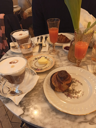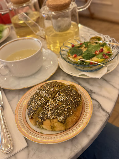Read moreI love this address in the Marais - so it's not my first time here! Normally I'd come for teatime for their famous tarts - with that special touch of salt in that perfect crust. But I've come a couple of times for lunch - and both times, no luck! They ran out of their savoury tarts quickly - but then it's up to us to arrive earlier and it's a sign that everything is so fresh. Many other options, including smoked salmon and runny egg, dips, bread but honestly, the crème de la crème is their sweet tarts. Don't come here without trying their winter Mont Blanc version or their summery strawberry tart with the lightest vanilla cream. The chocolat chaud isn't too sweet (with or without cream) and sublime house green tea with orange blossom. It has become quite pricey but it's our occasional treat next to Les...