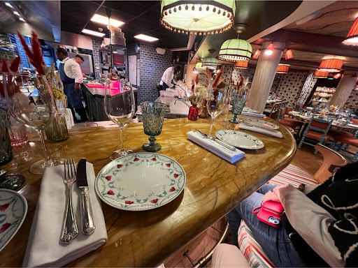 Category: Fine Food. On the day we arrived at our Paris hotel for the last night of our trip, before flying home the next day, The City of Light was really The City of Rain. We didn’t want to leave the hotel so we decided to eat in the hotel’s restaurant (unlike in the U.S., eating in hotels in most of the rest of the world is a Thing). Don’t get me wrong, we love French food. But after two weeks in France it was a pleasant surprise to learn that the hotel restaurant serves Mediterranean cuisine (see my separate review of Le Grand Mazarin Hotel). It is a joyous and somewhat flamboyant place, a feast for the eyes, with colorful flower motif wallpaper, grapecluster motif painted ceiling, green and orange fabric-covered and tasseled chandeliers, parquet floors of antique character, and glass sconces emitting amber-ish light. The sparkling open kitchen’s counter was veined marble with mosaic tile below. The dining room chairs were ornate blue with orange seats, or dark wood with green cushions, the tables wood. Off the dining room is a 7-seat L-shaped bar and a lounge area. An ornate private dining room with a glass roof seats 24. We chose to eat at the kitchen counter, watching the busy cooks work. We ordered a mezze lunch of three entrees: Arayes (pita stuffed with spicy beef), Confit D’Oignons (onion confit with anchovies and black olives) with pita, and Thon Blanc au Sumac (thinly sliced seared tuna with pistachios, caper berries, shaved parm, and lemon). All three dishes were delicious and exactly the taste and quantity we sought. Our accompanying wine choice was Domaine Fournier Bourgogne Côte d’Or, which complimented the food. This was a cheerful place to enjoy lunch on a wet, dreary, and cold late October afternoon. YouTube’s...