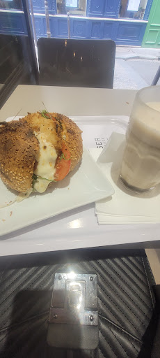 Read moreCame for lunch and was excited to try their sandwiches in our first visit to Paris. Their Sandwich Saumon was great! It looks relatively simple, and is, but the sandwich itself is quite large due to the length of the baguette. The crust had a solid crunch, and the ratio of salmon to the greens, dill and crème fraîche was perfect. The tables are very tightly packed like most cafes in the city. Like other places we encountered, it costed an additional 1,00 to eat the sandwich in the shop (as opposed to take out). It comes as is from their display case.