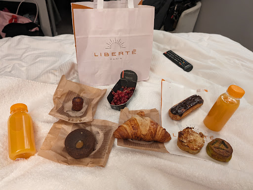 I picked up assorted baked goods for breakfast for myself and my spouse and we both agreed that the quality was simply lacking. Beautiful presentation at the boulangerie, but the food tasted like it was leftover from the day prior. Not fresh tasting, and a sad reminder that I should have returned to La Parisienne across the street. Comparatively, more expensive than La Parisienne as well. The orange juice was good, but didn't make up for the lackluster food. While there are many superior options for breakfast and baked goods on Rue St Dominique, if you have to come here, I do recommend the moelleux chocolate with salted caramel and the orange juice. Otherwise, skip this place and head over to the far superior La Parisienne, a better treat for your bouche...
