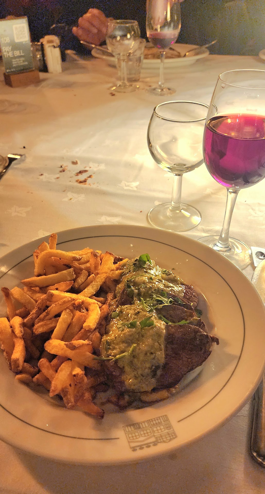I waited a while for my bill, and finally I paid and tipped the young guy behind the bar. I began to leave. The blonde waiter rushed after me at the stairs, and very abruptly said “you need to pay.“ I turned. He modified to “who did you pay?” Gesturing to the bar, I said “yes, I paid him.” Blondie asked his colleague, who confirmed, then he turned away to the computer and just left me standing there.