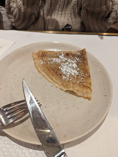 However, the overall impression was marred by the unfriendliness of the staff. The gentleman who assigned us our table appeared emotionless but hospitable. In contrast, our young waiter with a distinctive hairstyle showed no positive emotions. He repeatedly spoke to us in French, despite knowing we only spoke English. The cutlery was nearly tossed at us, and the food was slammed onto the table while he hummed a tune. We were never asked if everything was okay or if we had any needs.