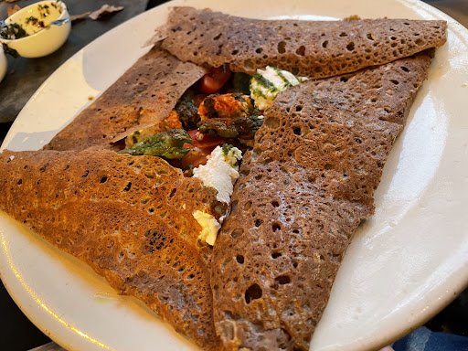 Read moreI had a craving for a sweet and once I arrived at Breizh Café, was upsold into a wonderful experience. They sell traditional buckwheat Breton crêpes - some with some Japanese influences. The dry cider paired with my savoury crêpe was also delicious. I could hear the jazz from across the seine, and also really enjoyed the yuzu butter crêpe I had for dessert. Service was lovely, and attentive. The waitress knew English was my preferred language as I took an English menu, but was patient with my French and we conversed entirely in French, despite her English probably being much better!