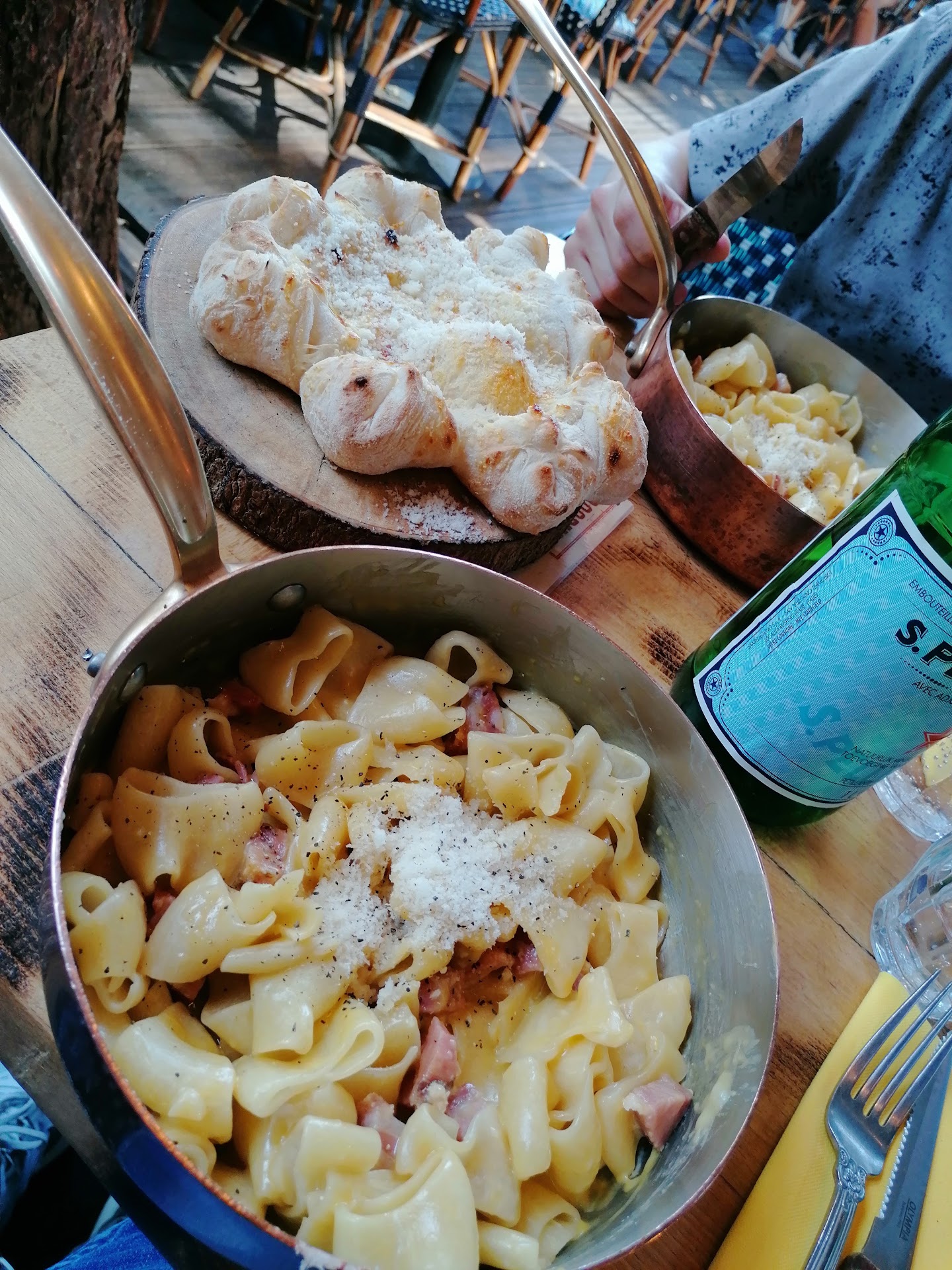 [EN] When I went here to eat during my 3 day Paris trip a few weeks ago, I wasn't really satisfied. The reason for this is actually quite simple. I ordered a carbonara, which was quite fast ready to eat, as well as the oven-baked bread with Parmesan. Both came at the same time and everything looked very good, as can be seen in the pictures. However, after a few bites, I noticed that the alleged carbonara actually didn't taste like anything else apart from the noodles. Exception, if maybe a piece of meat was included or salt or pepper. Since myself have some knowledge of cooking I also noticed that it should probably be an original carbonara, because it was made without cream. But because this wasn't my first original carbonara and I know what to expect, it wasn't all right, especially for the price. My very first time here, that I returned my food, which I didn't have to pay for afterwards, except for my drink and the bread, of course. The bread was okay, even if you not really tasted anything from the parmesan that was on it. Then another absolute no-go: These screws, which were sticking out of the table top on many tables, not just ours. Are they maybe all homemade? In any case, there was definitely a risk of injury. All in all 2...