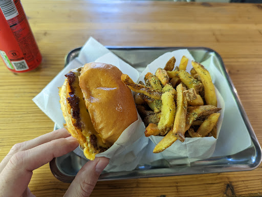 Read moreThe burger patty was cooked nicely in a smash style. The bag of fries was huge.