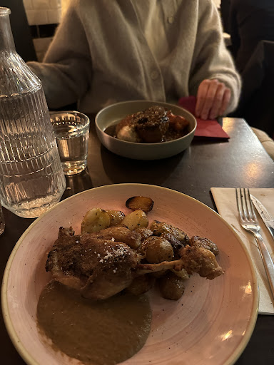 Read moreA cute, small little place in the heart of Paris. We were lucky enough to find a free table without a prior reservation. We had limited time but worked for us as we were hungry and didn’t want to hang around. Everyone was being nice and friendly and doing their best to communicate mixing French and English. Food took a little long to be served. Or it wasn’t actually, we were just really hungry and in a sort of a hurry. Doesn’t matter now, glad we stayed. Menu is short and simple and it makes sense. And the price ar fixed for entrees, mains and desserts. The food: I love French onion soup and this was my first chance to have it in France. Realised i was lying to myself this whole time. Everything i’ve had before was a cheap imitation. This was the real deal. Simply delish. Then the main courses: fish and chips. Leave it to the French to take the most basic English food that you never can go wrong with and make it better. Salmon??? Yes! Crunchy exterior over some of the best salmon steak i’ve ever had paired with homemade fries that were sprinkled with stardust. The duck breast with potato piure and baked pear was even better. The medium-done duck wasn’t good. It wasn’t excellent. It just made me happy. And a bunch of mashed potatoes french kissed a piece of butter is pretty much the only way to describe the side. Absolutely top, everything. And here comes more good news: one starter, 3 mains and drinks for 3 people came to under €30 each. In what looked like the busiest restaurant area in Paris....