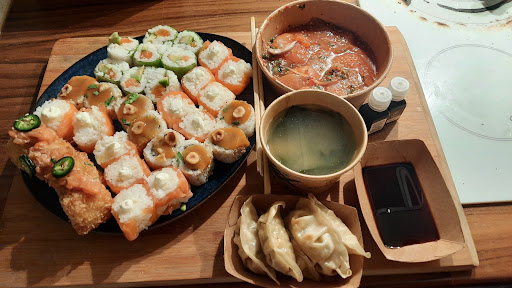 We’ll-executed rapid sushi setup. Decor is nicer than the grab-from-a-fridge options, but it’s not exactly atmospheric or a place to linger. There’s a brisk lunch trade - lots of takeaway (very slick and quick service) and short, sharp lunch-with-a-friend going on. Prices are fair given the portion size and general quality, but it’s not a ‘find’ or remarkable. The whole Latin/fusion thing is overblown - it’s just a metropolitan take on sushi and skewers. Not a criticism. This is a reliable chain if you are passing and need a quick bite while you rest your feet, or if you work nearby. It’s not however a ‘destination’. Staff were...