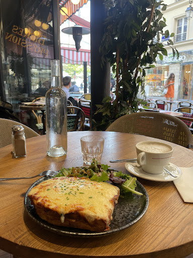 My wife and I and our two friends (all Americans) had a few drinks and a bit to eat at this restaurant in the afternoon one day last week. Our waitress was very attentive and funny. However, when it came time to pay the bill, she insisted that the bill did not include any "tip" or compensation for her as a waitress, and told us that a 15% gratuity was common in France. My wife and I, who have visited France dozens of times, knew that this was untrue, but our friends (who were paying the bill) felt cowed by the waitress and added a 15% gratuity as the waitress told them to do. I am sure that she would never try this on her French customers, and we feel that she lied to and took unfair advantage of our friends. If you are American (or from a country where gratuities for wait staff are common), do not go to this restaurant. You risk being cheated like our...