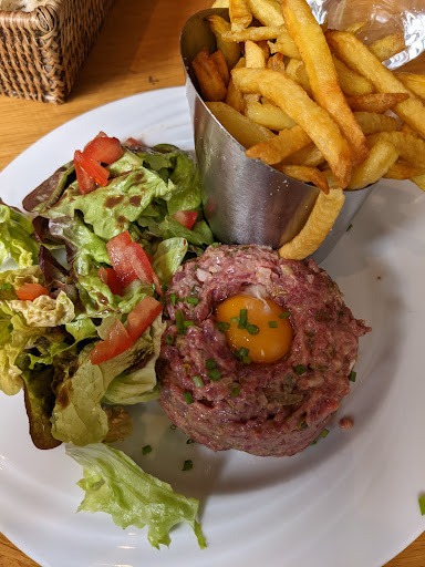 Read moreBeef tartare was delicious, classic flavors, and it tasted fantastic. I didn't have the courage to try the Thai Beef Tartare on the daily menu... It seemed like a risk, especially when I asked the server if it was good and she just shrugged her shoulders and rolled her eyes. Fries were great. Dressing on salad was super. They put up with my terrible French. Felt local for business lunches inside despite this area being super touristy. So what's...