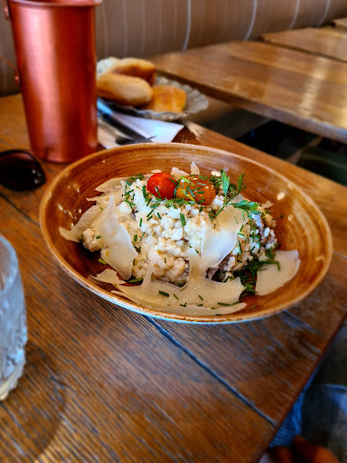 The restaurant was good, with a great staff and menu. We ordered 3 main dishes Risotto: ⭐️⭐️⭐️ - a bit cold, not well seasoned and huge portion. You had some flavor, only if mixed the parmesan and the egg with the rice. Entrecote: ⭐️⭐️⭐️⭐️ - a bit cold and heavy on the salt. But great sauce! (With a lot of garlic) Cabillaud: ⭐️⭐️⭐️⭐️⭐️ - well presented and balanced. The broccoli pure was really good and the fish...