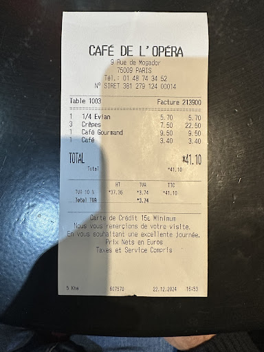 Service: As with most reviews on here I will say that the service was a two out of five stars. The waiter bantered a bit, but was very abrupt. He was busy but seemed dissatisfied with his job. You don’t go to a foreign country and expect people to speak your language, so between his small amount of English and our little to no French we did surprisingly well. Take a French to English dictionary or read the menu in advance online. I think the main issue with most people is that they expect to have perfect English spoken to them. That isn’t fair to the establishment.