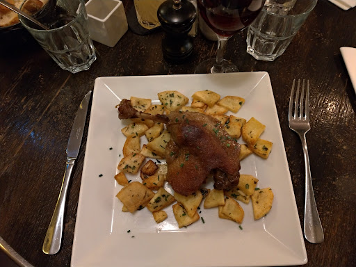 Looks decent at first but the escargots were small and mediocre. The French onion soup was the only half-good item. The steaks we had were abysmal, they were extremely thin and poorly cooked. I ordered a medium- rare and received a chewy dry slice of meat. The frites accompanying it tasted from frozen too. The wine we had to put with the steak at the waiters recommendation was also subpar. We asked for two glasses and the waiter tried to force a bottle on us. Strange service attitude. They took over half an hour to bring the cheque, and the manager seemed to be drunk on the job flirting with a clearly uncomfortable young waitress. Avoid.