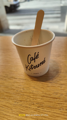 Read moreCafé Kitsuné était une adresse que j’avais dans ma liste à visiter depuis un moment. Le coffee shop est petit, et ce jour-là (1er mai), il y avait une grosse file d’attente. Tous les clients repartaient avec un iced matcha latte littéralement toutes les tables en avaient. J’ai hésité à en prendre un aussi, mais j’ai finalement suggéré à mon amie (qui aime le matcha mais pas le yuzu) de le tester, pendant que je prenais le iced yuzu & honey. Et franchement, aucun regret : j’ai adoré mon iced yuzu & honey. J’avais vu la barista préparer une base avec du miel, ça m’a tout de suite donné envie. Le yuzu était super parfumé, bien équilibré par le miel, et ultra rafraîchissant parfait pour une journée à 27°C. Mon amie, en revanche, a été déçue par son iced matcha latte. Elle le prend toujours avec du lait de vache, mais là, le lait prenait complètement le dessus sur le matcha. Je ne suis pas sûre qu’on nous ait proposé des alternatives végétales, même si je crois en avoir aperçues sur place. J’ai goûté aussi, et j’ai trouvé ça assez fade. J’ai fini par demander à la barista de rajouter un peu de sirop d’agave, elle a été très sympa. Son collègue aussi, très détendu je lui ai demandé des verres d’eau, et il me les a donnés sans problème. Par contre, le service était très lent : ils n’étaient que deux à bosser, et vu le monde, ça suivait difficilement. Ça ne m’a pas dérangée plus que ça, mais mon amie l’a remarqué, et plusieurs personnes dans la file s’impatientaient.