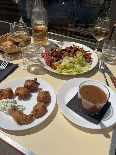 Le service a été globalement désagréable : le serveur semblait pressé, impatient. L’accueil réservé à notre groupe, et plus particulièrement à une personne en fauteuil roulant, a été très limite et ce Malgré l’autocollant "accessible PMR" sur la porte, on nous a fait comprendre que l’accès à l’intérieur était impossible. Heureusement qu’il faisait beau et que la terrasse était ouverte.