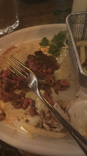 We were put at a very cramped table even though the place was basically empty. After 20 minutes of not being served we flagged someone down (granted he was polite enough) I ordered steak and egg, came with chips. It was mince made into the shape of a steak, it was truly disgusting. Cold and I tried to flavour it but as I didn’t order the tarter I just felt gross eating raw mince that was supposed to be a steak. The egg was under cooked and goopy. My friend got the pasta chicken and it was very bland. The worst meal I’ve had out in a while. Very very poor.