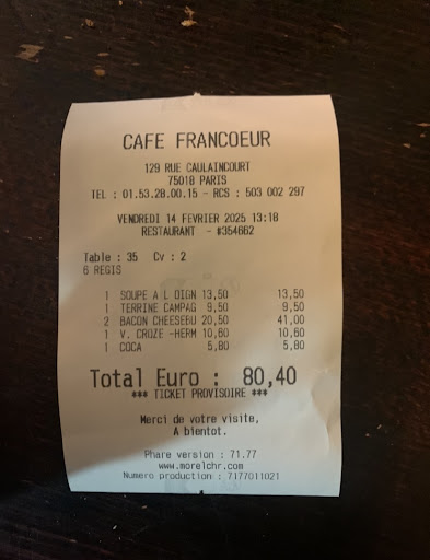 ⭐⭐⭐⭐⭐ A Classic Parisian Bistro Experience at Café Francoeur