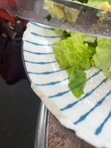 ANYWAY. She ate most of it, we're hungry, fine. Upon plates clearing up a bit (mine was meh. not good, not bad, just meh.) we realised that all of them had several chips and cracks in them - it went past being unhygienic to plain old super nasty (see attached photo). You can't get germs out of these chips - they're highly conductive to food poisoning (SPOILER ALERT: WHICH WE ONLY WENT AND GOT.)