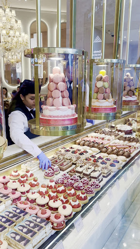 We walked in on a late Friday evening and were seated immediately. The atmosphere was very tranquil, quiet, and not too busy. The kindness and thoughtful gestures of the staff made us feel so special, especially the waiter, Yacine, who treated us so kindly and courteously. He checked up on us frequently and assured we had everything to desire. I was originally interested in having a lemon-flavored sparkling Sanpellegrino water, and although it wasn’t on the menu, Yacine politely went ahead and checked if they had it in stock before saying no. Since it wasn’t available, I decided to order a raspberry lemonade instead, which was exquisitely refreshing. Additionally, I requested it without sugar, and there was no issue ordering it to my liking. Most locations that offer such drinks won’t accommodate that request since they are already premade, but Yacine did, without hesitation, and I was so surprised. It was the best raspberry lemonade I’ve ever had in my life. I also ordered the Ferrero Rocher Cake because on the previous occasion in which I went to this café, it was what captivated my heart to come back once again, and it was just the most decadent chocolate delicacy. Yacine also made a thoughtful gesture of including 2 macaroons to try, and they were also so exquisite and soothing to my heart because they were the softest macaroons I had tried in awhile. It was very sweet and generous of him. I was celebrating my birthday, and he and the staff treated me to another delicious pastry, which included some beautiful sparkles and a very enthusiastic birthday melody from the staff. The birthday strawberry pastry was so divine because it was light and creamy and not too sweet or overpowering. I could immediately taste the strawberries and the flavorful, fluffy cake and cream as soon as I took that first delicious bite. What ignited me to take another bite after another was how it melted away in my mouth in the most pleasurable way. My friend also ordered a blue latte drink that she loved and a pistachio French toast, which was extremely big but very enjoyable. Yacine had mentioned that it was a relatively large portion, and I would definitely say it is a decent size for even two individuals. Surprisingly, we were extremely satisfied and weren’t able to finish everything we had ordered, and we requested him to pack it for us, and he packed everything up in the most delicate way. It looked like a professionally wrapped-up gift bag. I eagerly await the day I can go back to Paris again just to indulge in these delicious pastries and feel treated like I did during this past visit.