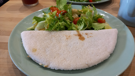 I came here with my friend and we loved it !! A safe heaven from the rain that serves a variety of drinks, including warm maté (which i took and was amazing). They also serve the gooeyest pão de queijo. And they have a broad choice tapioca fillings whether you want sweet or salty. I took a coconut shavings and condensed milk one that came with a blop of whipped cream. Whereas my friend decided to take a savoury one with ham, cream cheese, tomatoes (and maybe soemething else but i forgot) that came with a huge salad with vinaigraite, they were both scrumptious, balanced and flavourful. As well the carrot cake we had at the end was spectacular, not too sweet, well balanced thanks to the chocolate...