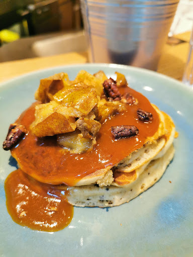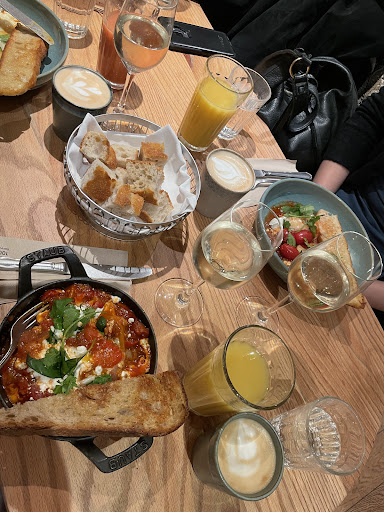 If you're coming here for a weekend brunch, bring a lot of patience with you (or reserve a table, then you're fine!) We decided to try our luck, were seated at the bar as we haven't reserved but were completely ignored for the longest time until someone finally took our order (therefore the 1 star reduction). For the food, we had the egg sandwiches (which were tasty), the fritata (which was too big of a portion with the same taste throughout) & the pancakes (which we really enjoyed!). I was really happy about the tea of great quality & tasting a sip of the pumpkin spice latte, it seemed to be really delicious too! Another star reduction from me would be for the prices, which are extremely high, even for Paris. But to end on a positive note, the paying system is absolutely amazing!!!!! You just scan a QR code on your table when you're ready to leave & you can separate the bill as you like, definitely an innovation I'd love to see more...