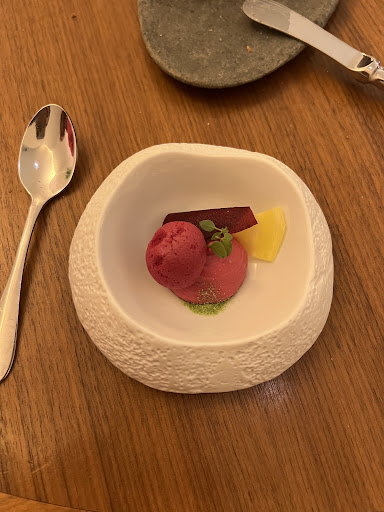 Read moreCame in for a dinner on a Saturday night. Before we sat down we told the kitchen staff that one of us is pescatarian and whether they can switch the veal in the tasting menu with a fish. He said yes. Once we sat down and wanted to order one regular tasting menu and one with fish, the chef sent a message with the waiter that both of us would have to get fish. We asked if we came in to the restaurant individually would they accommodate the pescatarian menu request for one of us? They said yes. So it didn’t make sense why they couldn’t make this simple change, especially given the reputation of this place. Anyways we ended up ordering a la carte. My husband got the veal and I got the mackerel. The fish and the veggies were very bland and lacked flavor. The presentation was beautiful, but the food was tasteless. He didn’t love his veal either. We got Paris Brest for dessert. It was good - 7/10.