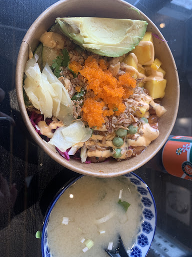 Read moreGood poke bowl. Obviously not like authentic hawaiian poke bowls, but still okay cuz i was starving at the time. I got the salmon poke bowl with no modifications. I thought it just had maybe a bit too much going on inside and rice to ingredients ratio a bit off. Didn’t like that it had too many sauces going on and i felt i wanted more rice cuz it was a teeeeny tiny bit salty cuz of the sauces. Still enjoyed my bowl though. :) maybe next time i’ll just make my own bowl by choosing the ingredients. miso soup was just ok. But it’s not a big expectation for me. Pretty much all taste similar in small restaurants like this. So in that sense...