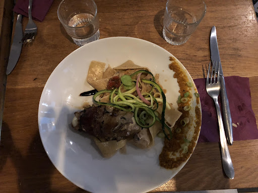 Some people told me to go to this restaurant as it was worth a try and I am very pleased of having listened to them. « Carotte bleue » is a typical and authentic French bistrot: it is very small, the tables are very close one to the other and there are few place available to sit (that’s why I suggest that you book a table before coming)— in general the atmosphere is very intimate and warm. Being the restaurant very small, there is only one person who runs the restaurant (apart from the chefs), but the service is fast and efficient. The menu is well assorted and it offers various famous dishes of the French Cuisine, as well as unique combinations of food as main dishes. For example I tried a plate which had pappardelle (a type of pasta), saltimbocca and mushroom sauce. Although I was very skeptical about the pasta (being myself Italian), I must admit that it did not disappoint me: it was perfectly cooked and unbelievably tasty. Bravi! I highly recommend this place and it is surely worth a try,...