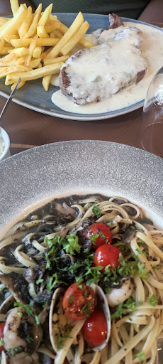 La nourriture est excellente. Le cocktail très bon est très bien dosé en sucre. Tout est fait maison et ça se sent. Nous avons pris une entrecôte gorgonzola et les linguine à la truffe crevettes et palourdes. C'était délicieux, un vrai régal. En dessert c'était glace et mi-cuit au chocolat, très gourmands et savoureux. Seules les glaces ne sont pas faites maison, mais ils se fournissent chez un très bon glacier car elles sont excellentes !