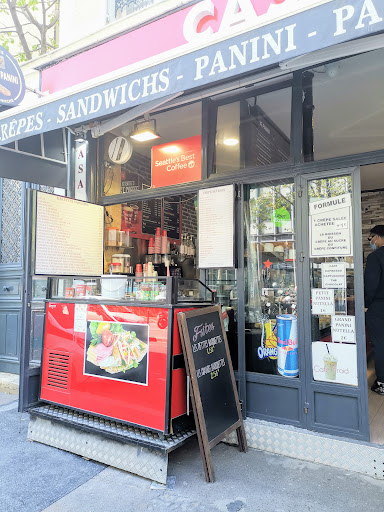 This was definitely a wonderful place to stop for crepes. We had a sarasin crepes with chicken, cheese and egg, and another one with Nutella & banana. Both crepes were delicious and huge. The savory one even had salad and tomato and well seasoned with salt and pepper. The Nutella one had a full banana and lots of Nutella. This is a great place to stop by, located between the Jardin Des plantes et the Metro. Price were great as well. @10€ for both crepes! The menu is great and has lots of options not...