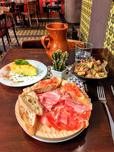 So weâve bought a groupon - brunch for 2 with half a bottle of wine. The problems start at the moment of reservation (rude scammy service). The offer had to include a selection of cheese and ham, tomato bread, chicken skewer etc. The waiter comes and ask if we like garlic bread. Sure, we like! he then says - itâs extra. No tomato bread was given either. then he asks what we will drink. We remind him that the offer already has wine included. They bring wine - and you wonât believe it - we understand that the bottle was opened before and it was refilled with some cheap wine instead. Then they bring tomatoes, grated carrots and mushrooms. Mushrooms were rotten, so we couldnât eat them. When we pointed this out, the server wasnât even surprised. We actually love vegetables, but it would be hard to get full with the quantity of food given. Since they didnât give us promised in the offer tomato bread, we asked for a baguette which is free in France as well as tap water by the law. We finished it with that strange wine and got a bit full for the day. No cheese and ham, only burned chorizo, but itâs not really a chorizo, itâs something similar but of a very low quality. When I said I didnât like the chorizo as a gesture they brought a new plate, it was different but still disgusting. Such a shame. Owners seem bitter and unwelcoming. We were observing the owner pushing the tourists for drinks (no drink menu, so they all will have a big nice surprise in the bill) around us. Such a terrible place. The owner does not understand that what he does is a road leading to more financial problems, losing customers, poor reviews⊠This attitude is a spiral going down. A prosperous place start from good food and service, not with a scam. The food they serve is good for stray dogs probably, I wouldnât give...