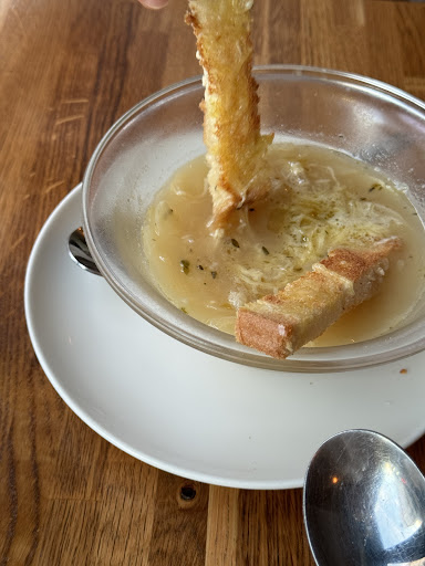 I have come here twice. The first time we came we were kindly greeted. The food was also delicious. I had ordered the French onion soup and it was very delicious! Last night we went back and they offered me a dish called “passier”. I had never heard of it but I was not going to turn down the recommendation. So the plate came over and it looked like a crepe like wrap. Very crunchy when I cut it with my knife. It had chicken, veggies and almonds. I am picky about almonds but honestly it was a very delicious plate as well as a salad by it. I also had a tiramisu that was sooo good. The staff is very friendly and patient with us. I will...
