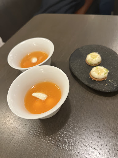 Read moreC'est bon. Les techniques sont maîtrisées et les produits sont de qualités. Cependant les prix sont exorbitants pour la quantité servie et pour l'inventivité timide derrière les plats. Ça manque de punch ou de la petite touche qui justifierai de tels tarifs. Les desserts étaient goûtus et généreux par rapport au reste de la carte. Mais franchement, une entrée d'asperges avec de l'œuf aussi bonne soit elle à 32€ et une assiette de fromages de 70g à 15€... Ce n'est pas acceptable. Le prix des vins est très honnête. Je ne comprends pas la stratégie adoptée par le restaurant mais une chose est sûre, il y a un problème au niveau de la tarification. A ce niveau de prix, soit c'est inventif soit c'est généreux. Ici, rien de tout cela malheureusement... Un menu découverte entrée/plat/dessert autours de 85€ serait le bienvenu pour éviter...