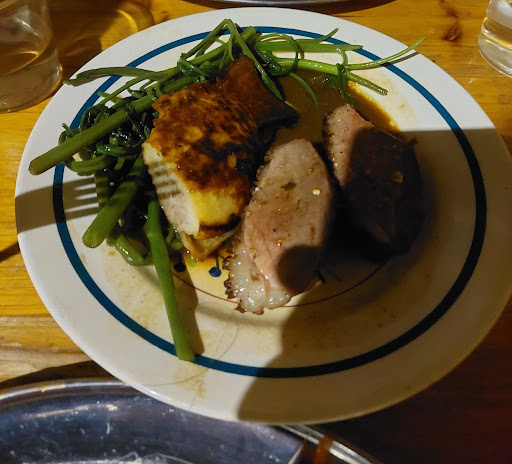 Deux petits bémols dont je ne tiens pas compte dans la notation, comme évoqué, se garer en voiture peut-être compliqué (privilégiez une autre solution si possible). Le deuxième bémol est un peu plus surprenant : j'ai été séduit par le cadre intérieur très cozy et chaleureux que l'on peut voir sur les photos. Malgré la qualité de l'accueil, ma premiere impression était beaucoup plus mitigée (il faut tout de même prendre en compte que j'attendais ma compagne depuis 20 bonnes minutes faute de place de parking) quand j'ai vu que l'on serait en terrasse en bord de route (on nous a bien proposé une table en intérieur cependant mais sans le charme de la magie des photos). Toutefois, même si ce n'est pas la terrasse qui propose le meilleur cadre, on y était très bien et l'ambiance était très agréable. Avec le recul, on a sans doute passé une meilleure soirée que si l'on avait été à l'intérieur isolés. Ça donne toutefois envie de tester en hiver (soirée raclette ?).