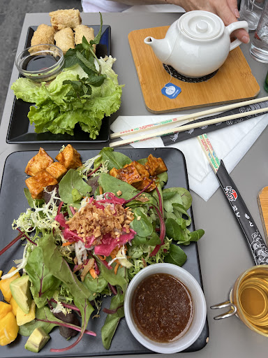 Read moreHighly recommend Vietnamese. Fresh, whole vegetable. Though I didn't drink, I was impressed with the selection of half bottles of wine - nice idea. The food was fresh and tasty. Big cuts of delicious well cooked vegetable. My wife had veggie nems which looked delicous. I had a big salad with avocado and mango which was awesome and then a coconut curry. Many vegan options - you just have to ask whats in what. Will be coming back if I'm in the neighborhood. Seemed like a popular spot, though we did not have to wait, not too many tables free and passers-by were telling their friends and family that the place was good while turning their heads and looking in. A little pricey but I didn't mind because the quality was good. If you get a menu, you could probably get in and out with a drink and coffee for...