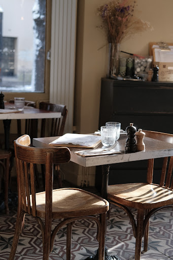 J’adore ce restaurant! I popped in here on a Thursday evening to eat solo having read good reviews. The outside looks really charming and I arrived at 7:30pm and it was empty but I’m sitting here at 9pm drinking my post meal cafe crème (lovely) and it is full! The outside is charming and inviting and the inside was the same! I felt a bit nervous/embarrassed with my lack of French but was greeted by a lovely hostess who immediately made me feel welcome and at ease. I love that the menu is small as I usually feel there is more thought and care put into each item. (True in this case). I ordered a lovely red wine (Cabernet franc from loire valley) (great affordable selection in multiple different sizes) and then had butternut squash croquette starter which honestly blew my mind. Incredibly tasty and light which I dont think I can say about any other croquettes I’ve eaten. Burger was cooked to perfection and I loved the side salad! I felt so welcome and at ease for dinner and would come back in a heartbeat! Thank you so so much Cherie Cherie for a wonderful first...