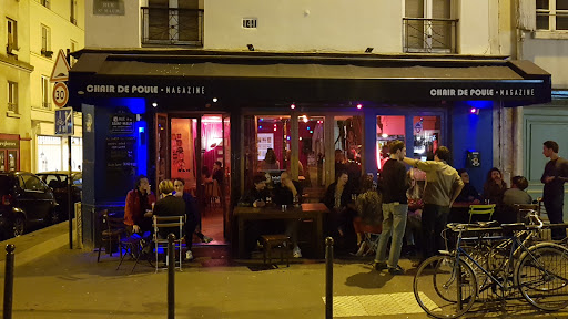Le Chair de Poule est un café-restaurant qui ne sert pas que du poulet, malgré son nom. Au contraire, ici on fusionne toutes sortes d’ingrédients nobles et exotiques dans des tapas de luxe, et on vous concocte des cocktails électriques pour vous faire frissonner. Le principe est très convivial : on commande plusieurs tapas que l’on partage entre amis. Ainsi, on peut goûter différentes saveurs comme un baba ghannouj (purée d'aubergine aux épices) une assiette d’huîtres, un tartare de saumon à la mangue et sésame, un travers de porc au miso, un tartare de bar à la grenade, du pain perdu à la figue... on se bagarre à coups de fourchette pour finir les plats.