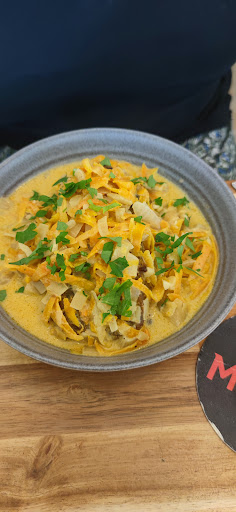 Un accueil chaleureux. Pas de hichis . Ici on cuisine. Pas un restaurant a Bobos. Un vrai restaurant de gourmets et de gourmands. La cuisinière, visiblement des pays de l est , une carte 50/50 des tendances cuisine française et juive. Peu de plats dans le menu, des suggestions du jour. On est parti pour un voyage savoureux. En entrée rillettes de crevettes : L'assiette est simple et efficace, mettant en valeur les rillettes. Le contraste entre le blanc des rillettes et le vert des herbes est très agréable. Texture: la texture est onctueuse et crémeus, idéale pour être tartinée sur du pain. Garniture: Les graines de grenade apportent une touche de couleur et de croquant, de douceur tandis que les herbes fraîches donnent une note de fraîcheur. Le pain semble frais et croustillant, parfait pour accompagner les rillettes. "Indéniablement une invitation au plaisir gustatif ! Ces rillettes de crevettes, avec leur texture onctueuse et leurs saveurs délicates, sont un véritable délice. Le mariage parfait entre la fraîcheur des herbes, le croquant des graines de grenade et la douceur des crevettes. Un incontournable à tester absolument ! Le plat 1 : Absolument magnifique ! Ce plat de sardines en papillon est délicieux et très bien présenté. Les sardines: Cuites à la perfection, elles ont une peau croustillante et une chair tendre. L'accompagnement: La purée de betterave colorée et acidulée contraste très bien avec la douceur de la pomme de terre écrasée. Le beurre d'ail apporte une touche gourmande. La garniture: Les herbes fraîches et les graines de grenade ajoutent une touche de fraîcheur et de couleur. Plat 2: Il y a une certaine incongruité entre la description textuelle. On parle de "boulettes de poireaux à la farine de matzo", de "pâte de blé dur toasté" et d'un plat "digne d'un grand chef". On voit un plat avec une sauce onctueuse de couleur jaune orangé, des tagliatelles (ou quelque chose de très similaire) et du persil haché comme garniture. La finalité se passe dans la dégustation et dans le plaisir. Le palais, les papilles revivent des goûts francs . Un vrai délice. On fini par une traditionnelle mousse au chocolat... Bonne accompagnée de feuilles de menthe... Tu marches tu manges... Du goût... Encore et toujours. Il faut absolument y venir se poser et prendre du plaisir...vaut plus qu un détour. Personnellement une des meilleures adresse de Paris en rapport...
