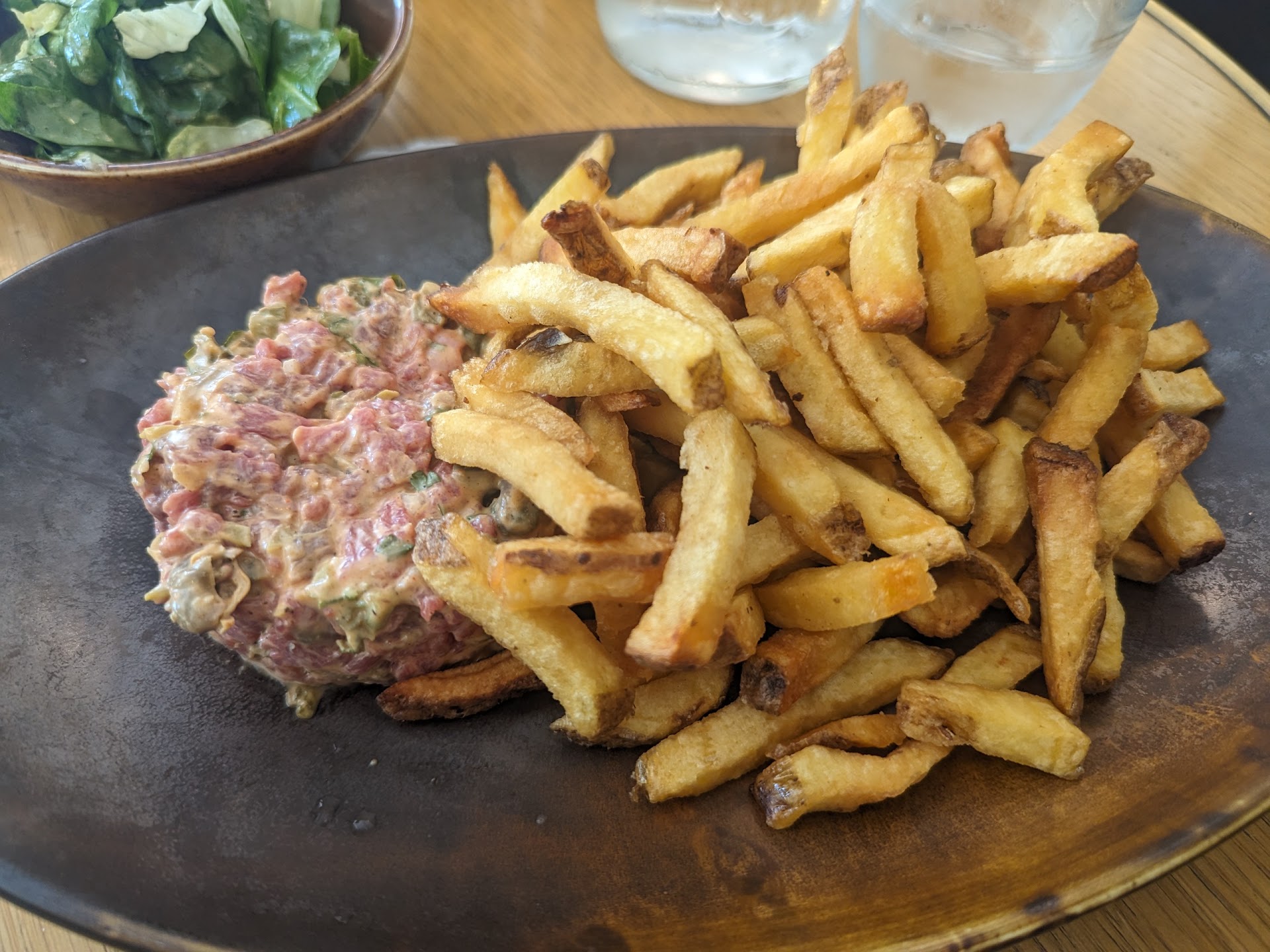the worst food I’ve ever eaten. I ordered beef—my first time in France with high respect to French cooking. But the steak tasted like it had been frozen for six months and then nuked in a microwave. It was so tough I had to chew with all my strength. The waiter never even asked me how I wanted it cooked—clearly it didn’t matter.