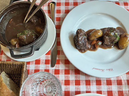 I found this place when I was studying abroad in Paris almost 13 years ago. I like to think of it as a hidden gem but I think the secret has been out for awhile now. However i think that is part of what makes Chez Fernand so special- while walking down Rue Christine- beautiful and charming street- away from the hustle and bustle of the 6th-you feel as though you just happens upon this quintessential French restaurant and when you walk in- you are greeted by the friendly servers, who bring you to your white and red table clothed table- tucking you into your chairs and presenting you the menu on a chalk board (note don’t worry they have regular menu too.) The inside is rustic and reminds me of a wine cellar and/or castle. I have been 3 times since throughout the past 10 years on my visits back. I will also say I have recommended this place to any of my friends or family members visiting Paris and everyone always says it was one of the best meals and also favorite experiences. Chez Fernand to me is quintessential French food and ambiance- I always get their famous boeuf bourguignon- absolutely amazing! They serve it to you directly from the pot, hot and melts in your mouth. Escargot are also amazing. Wine list is 50+ pages long! Desserts are also incredible. I have always had incredible service and been welcomed with open arms. I also like the fact that tourists know about it but locals also frequent the restaurant as well! It’s also in a super convenient location near St Michel and a super cute quiet street off to the side of the hustle and bustle of St Michel. Lastly, I just celebrated my 34 birthday there in April and there was a man celebrating his 96th birthday 2 tables down! It was a jovial evening and then all 4 tables in our section were laughing and drinking wine - I just want to say thank you to the staff and thank you bringing out a massive rum...