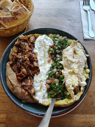 We took the falafel and beignets dishes with option rice and bulgur, for our train trip in a pickup doggy bag. Both plates were delicious. All items were fresh and still hot when we opened them. To combine the dishes with salads, humus and sauce was a perfect addition.