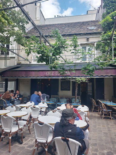 Came here for dinner based on the good online reviews and the good vibes of the outdoor seating area. Regarding food, it's the worst French meal in my life. Pate tasted so funny that after one bite we had to throw it away. Onion soup was very dark and bitter due to burnt onion. Other dishes were very mediocre. The worst part of dining here was the security of your personal belongings! I left my iPhone on the table while dining outside. A very sketchy old man came by very close to our table several times. After the second to last time he came, we were notified by our kind neighboring guests that he was STARING at my smartphone while passing! So I took the phone and put it in my pocket immediately. The sketchy old man came again and for the last time. He desperately came right towards our table, maybe surprised at the fact that my phone was no longer there. He came so close to us that we almost thought he could hurt us, so we bounced off our table and into our neighboring table. Luckily he left without touching us or our table. Other guests also noticed this rude behavior and some waitresses saw too. But few waitresses speak English and NONE apologized to us for our experience or had previously warned us of the weirdos/thieves in the neighborhood and keeping phones off tables. The story didn't just end here. Right before we were leaving, a very sketchy and witch-looking old lady came by the restaurant and stared at us and our table for a few seconds. We speculated that she was the old man's accomplice. We quickly left the restaurant and Montmartre afterwards.